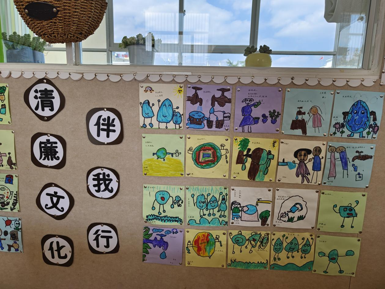 图为砚山县第一幼儿园班级廉洁文化建设作品展示