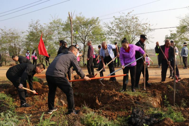随后,全体干部职工与托嘎村党员干部群众在进村道路两旁开展义务植树活动,挥锹铲土、种植树苗、提水浇灌。不一会,1000余株樱花树栽种完成,为拖嘎村增添了一道风景线。