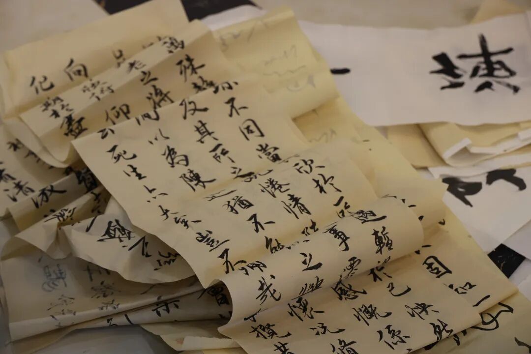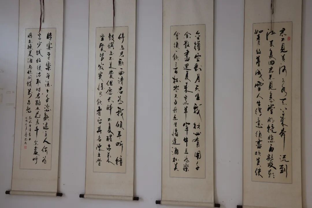 墙面悬挂的一幅幅书法作品