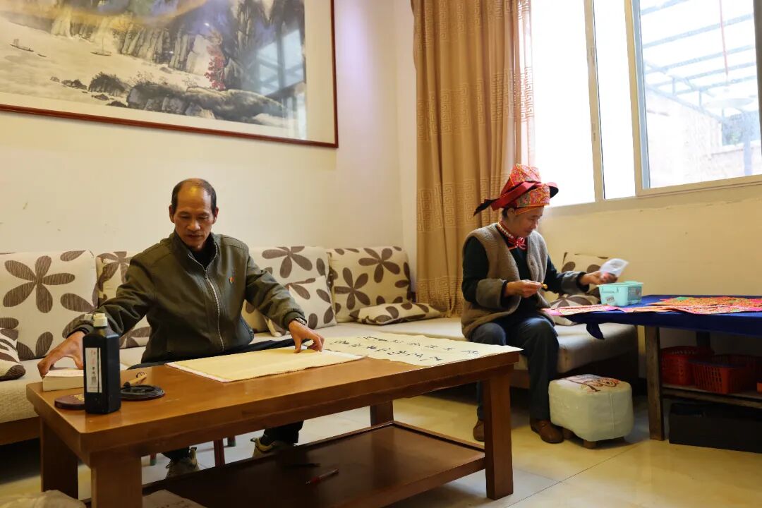 如今,他的家不仅是增收致富的“产业屋”,更是充满墨香的“文化屋”,前来串门的村民常会驻足欣赏,带动村里形成了崇尚文化、积极向上的良好氛围。“以前一门心思只想赚钱过日子,现在物质生活好了,精神生活也得跟上。写书法不仅能修身养性,还能把心里的感恩和幸福写出来,特别有意义。”唐廷超笑着说。