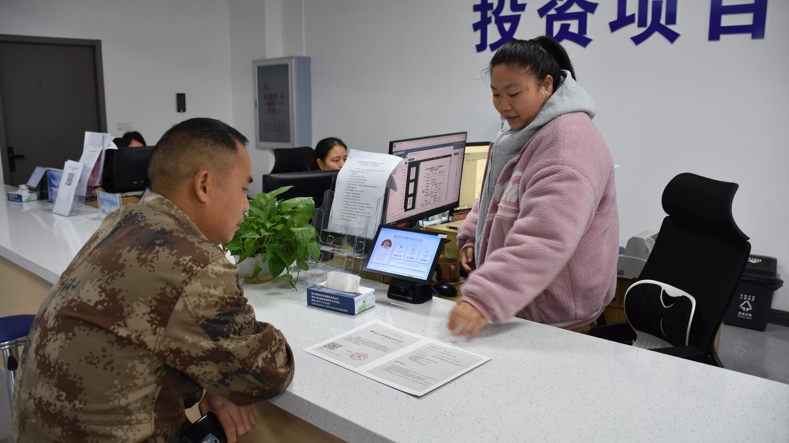 “真的非常方便,只要证件带齐,复印打印都能在里面搞定,以前要好几天才能办好的,现在一小会儿就办好了。”在砚山县政务服务中心一楼办税区,盘龙乡明德村来办理特种车辆购置税的张家胜,在工作人员引导帮助下很快填好相关表格,对相关服务夸赞不已。在二楼的自然资源局办事窗口,江那镇的郑文龙刚领到崭新的《建设工程规划许可证》,喜滋滋做好了盖新房的准备,“一个多星期前交申请资料,今天就能领证,速度相当给力。”